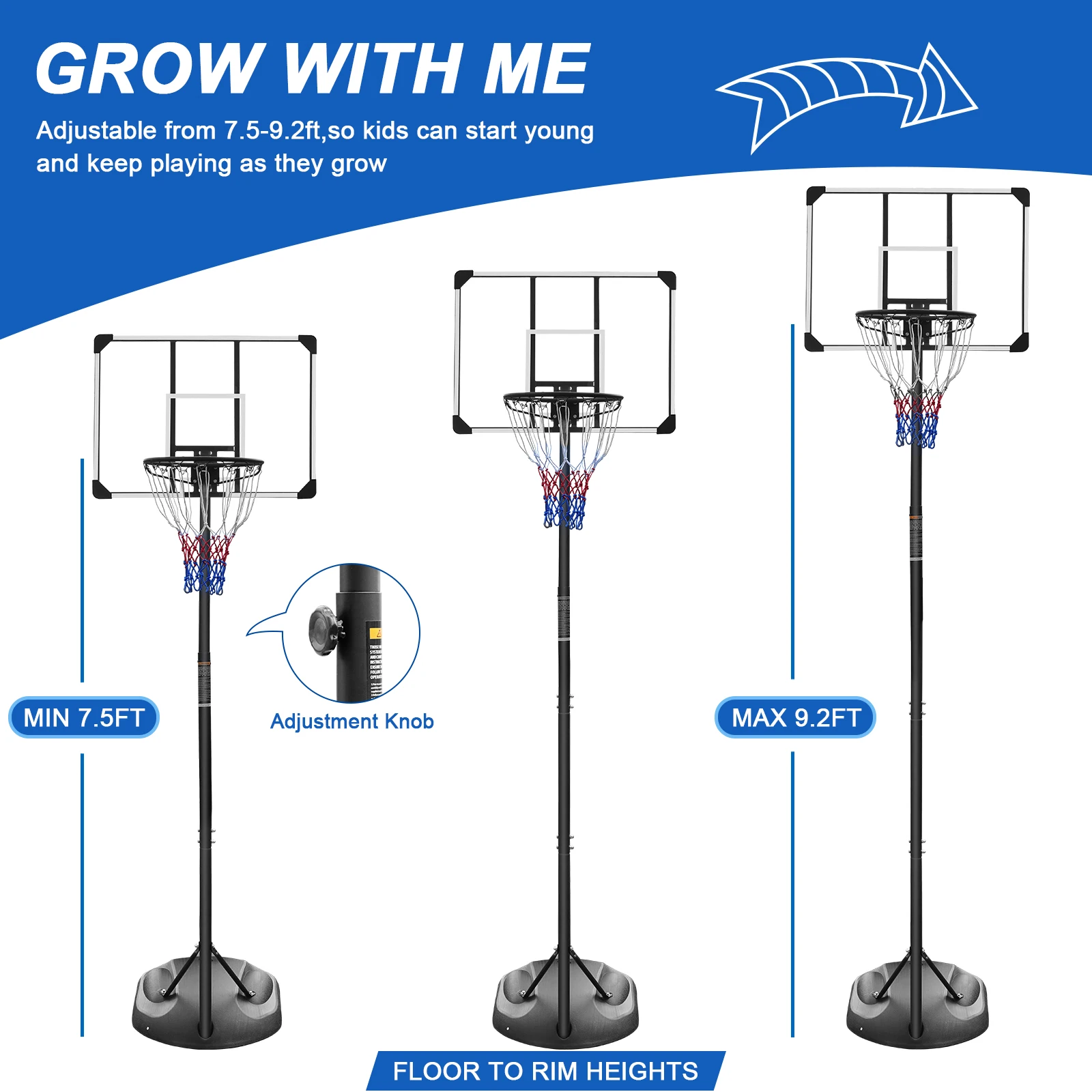 What sets this basketball hoop stand apart is its portable design. The stand can be easily moved from one location to another, allowing you to set up a game wherever you go. Whether you want to play in the driveway, backyard, or even indoors, this system is easy to transport and set up.
