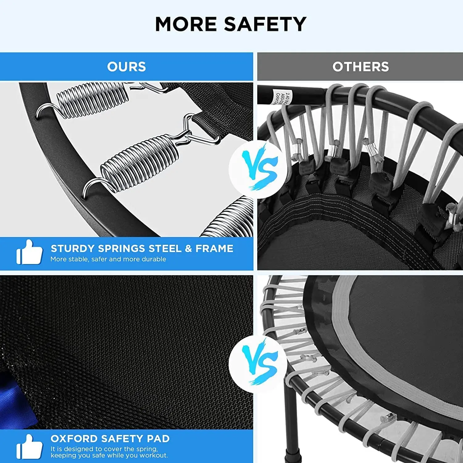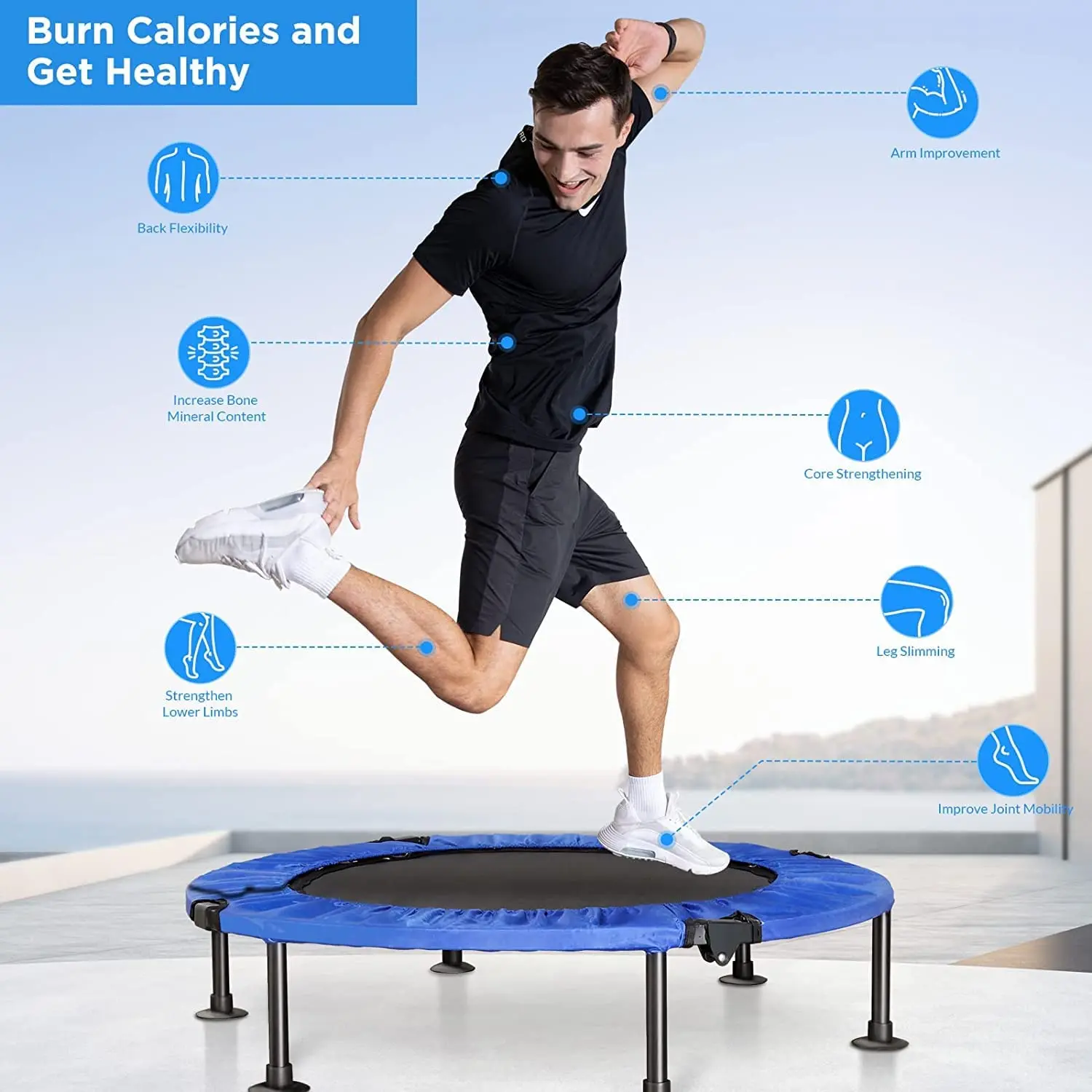 With a 40" diameter, this mini trampoline provides plenty of space for jumping and bouncing, making it a great option for users of all sizes. The sturdy design and high-quality materials ensure that this trampoline can support up to 220 pounds, making it suitable for both kids and adults