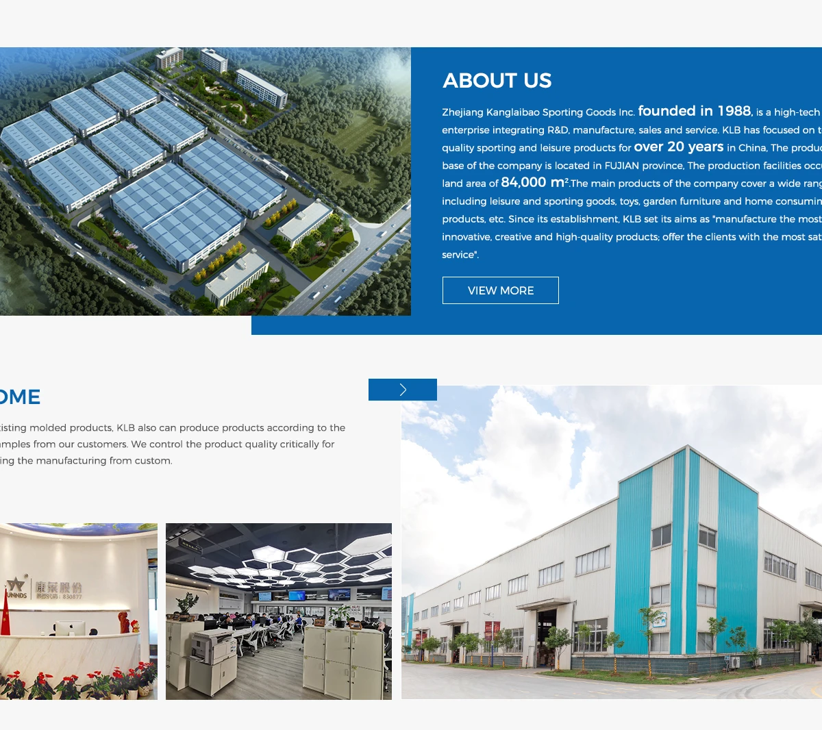 Zhejiang Kanglaibao Sporting Goods Inc. founded in 1988, is a high-tech enterprise integrating R&D, manufacture, sales, and service. KLB has focused on top quality sporting and leisure products for over 20 years in China. The production base of the company is located in FUJIAN province. The production facilities occupy a land area of 84,000 m2