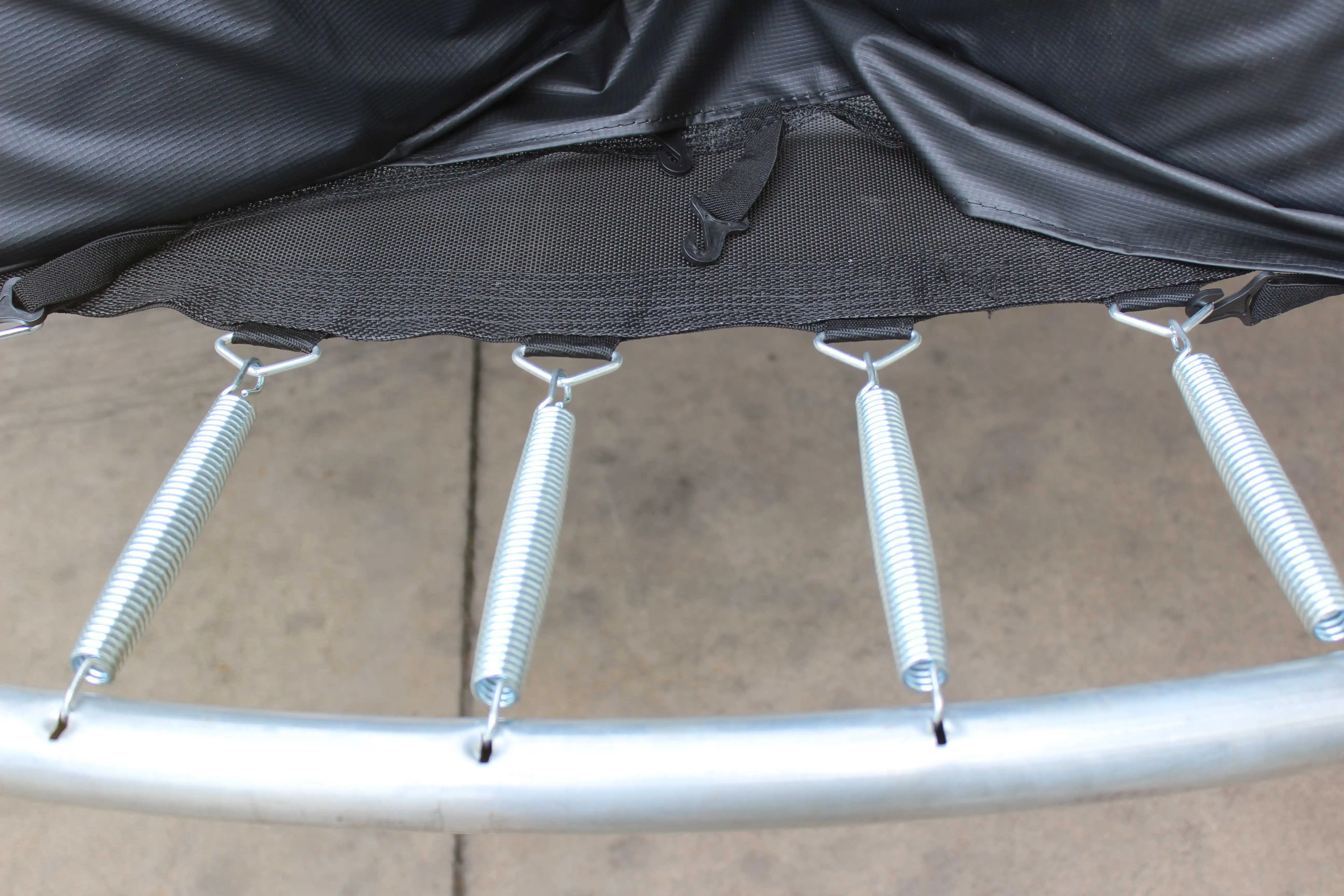- The frame consists of galvanized rust resistant steel. They are durable and rust resistant and also provides longer service life for the trampoline. T-sections can securely and stably connect each top rail and also provide a solid base for the whole trampoline. There are 60 springs which are designed for fixing the whole base part
