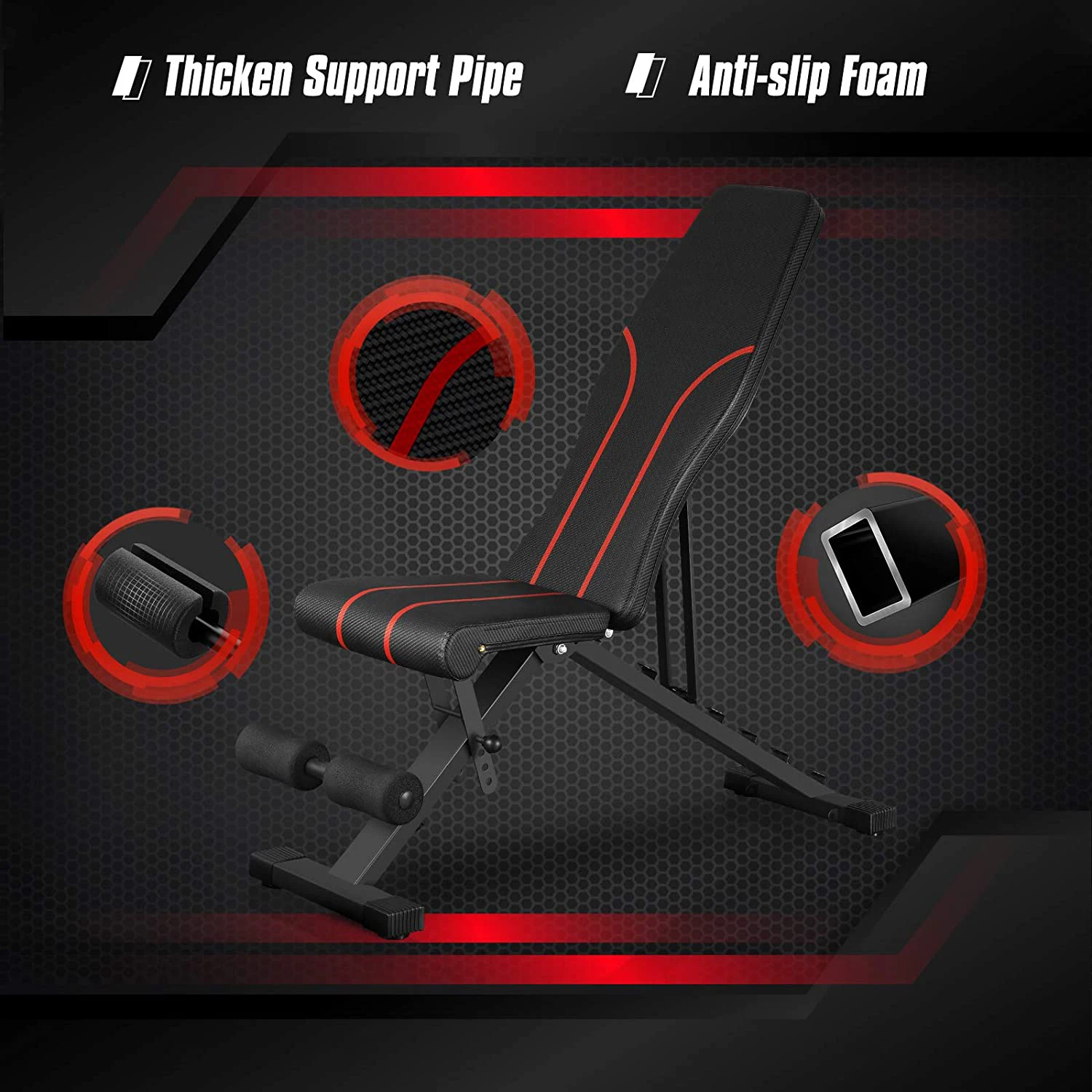 The comfortable foam padding and adjustable leg support make it easy to stay in proper form while performing sit-ups, crunches, leg raises, and more. The non-slip feet keep the bench securely in place on any surface, so you can focus on your workout without worrying about stability.