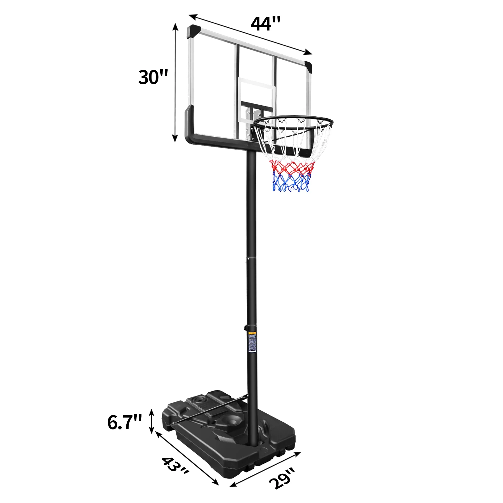 Steel tube+PE backboard +PE base+ Steel rim |
