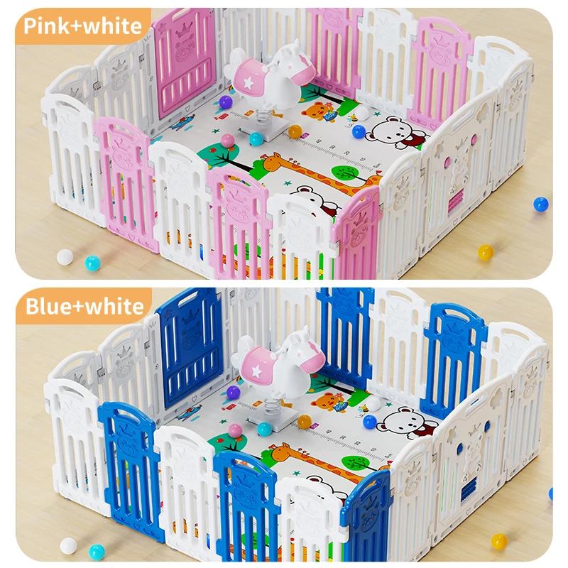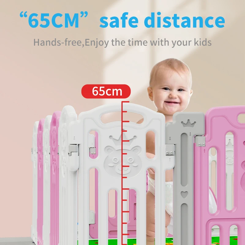 This playpen is foldable and portable, making it easy to set up and take down. Whether you're at home or on the go, you can quickly assemble the playpen to create a designated play area for your child. The lightweight design also makes it easy to transport, so you can bring it with you wherever you go.