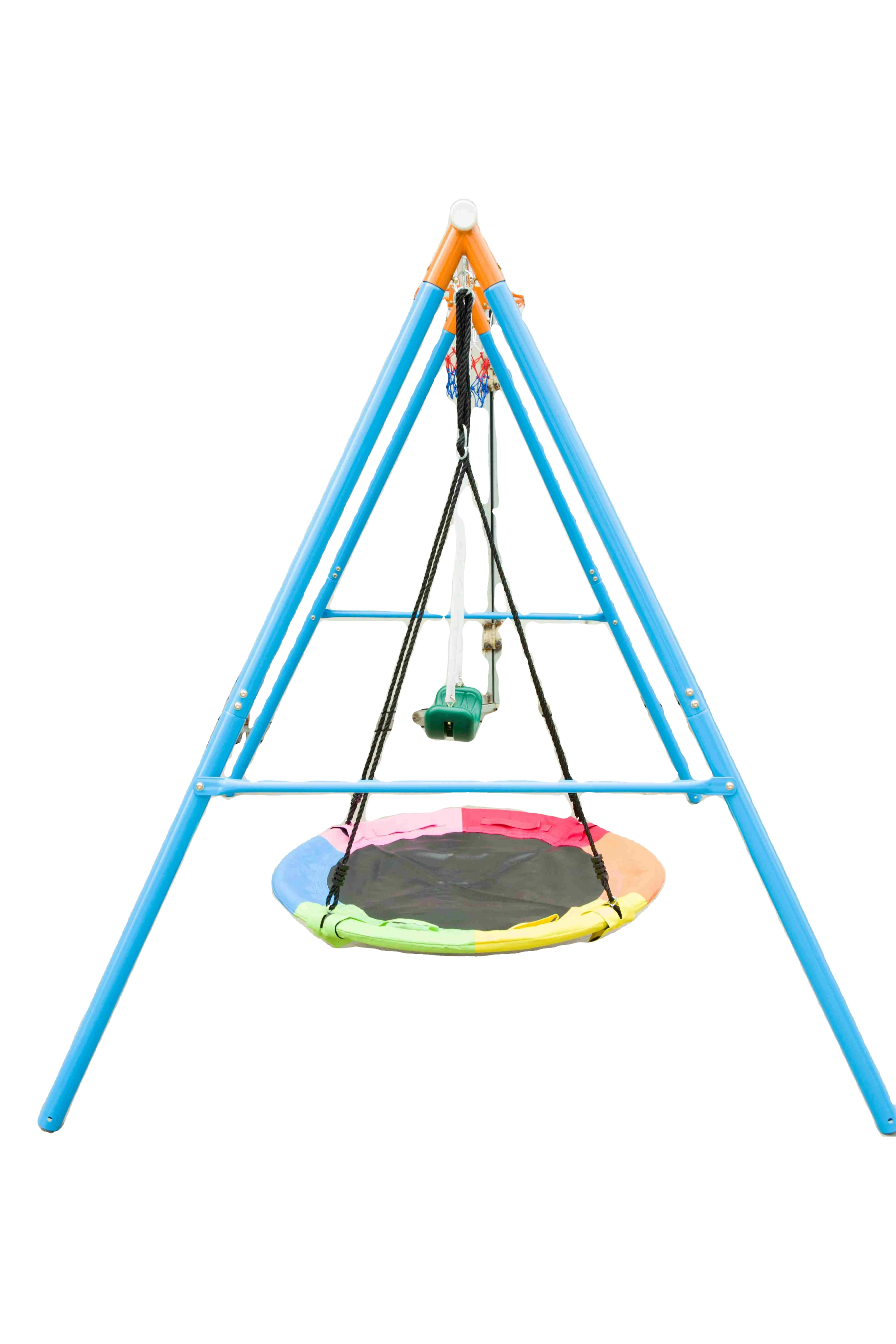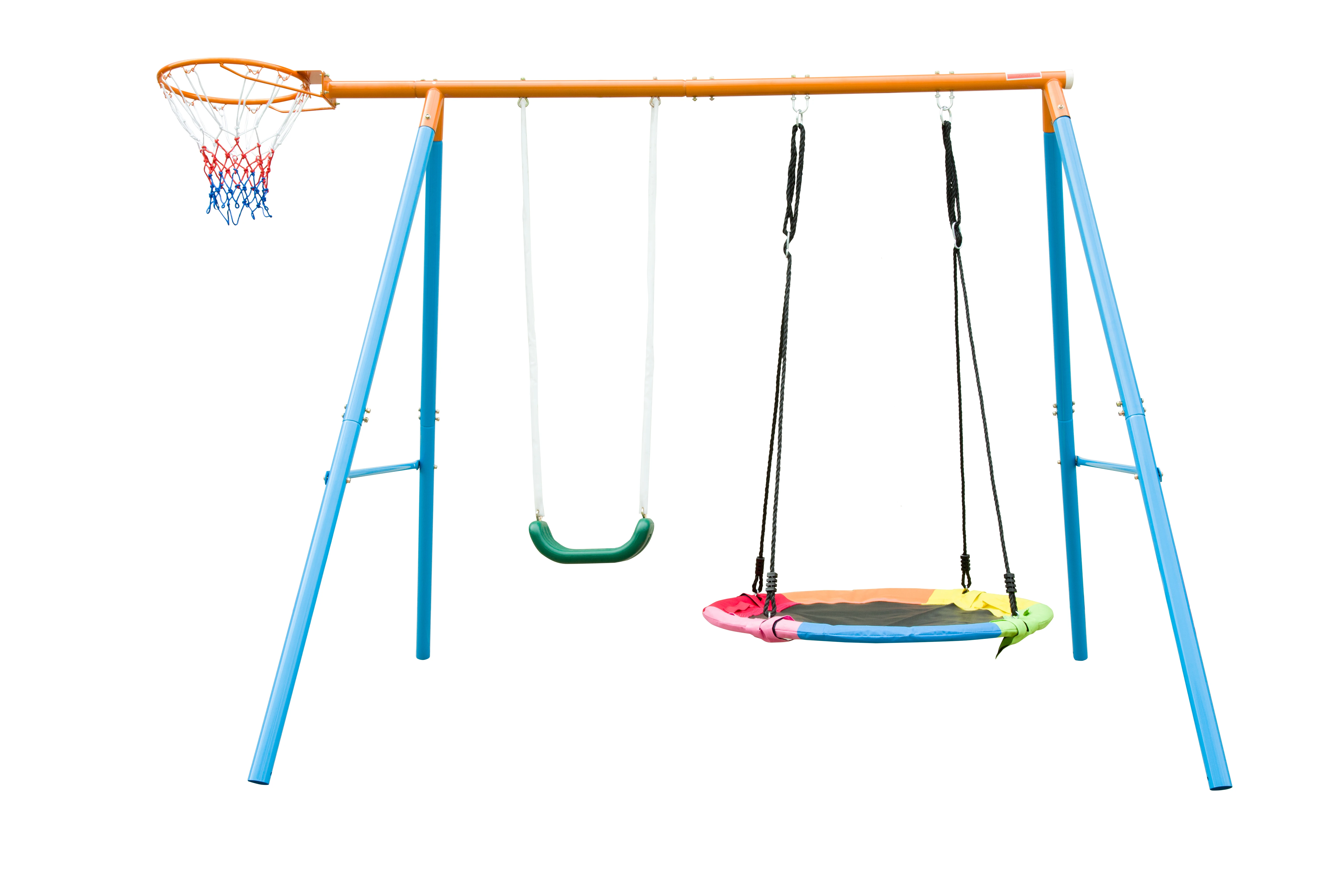 Made with a durable and sturdy heavy-duty A-frame metal outdoor swing stand, this swing set is built to withstand up to 500lbs of weight, ensuring a safe and secure swinging experience for everyone. The A-frame design also makes it easy to set up and move around your backyard, allowing you to find the perfect spot for your swing set.
